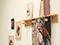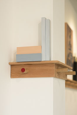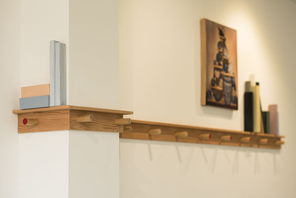 Peg rail/ books: reclaimed Oregon, dowel, Pine, Acrylic paint, Install size variable